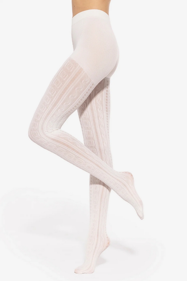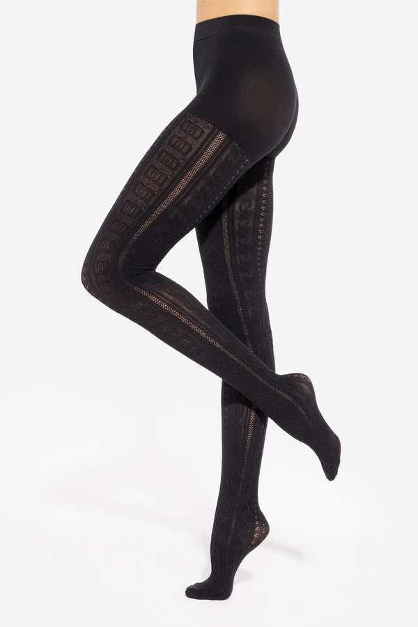 Rajstopy Fabiane 07 to ażurowe rajstopy o warkoczowym, geometrycznym wzorze.Część pośladkowa jest gładka. Wykorzystana w tym modelu elastyczna gumka sprawdzi się doskonale nawet pod obcisłym ubraniem.